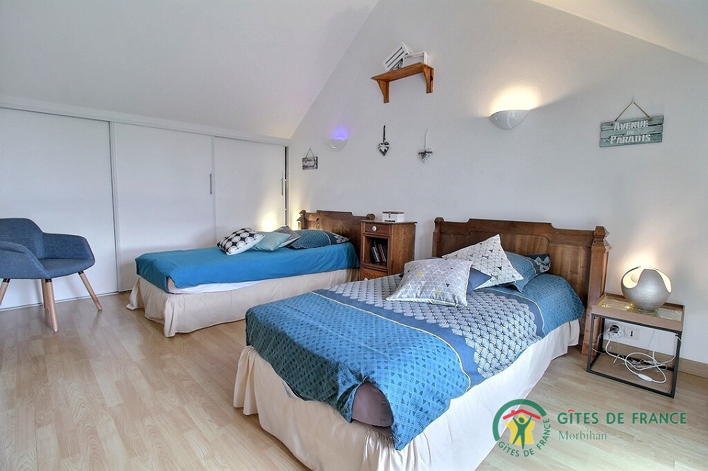 - A l'étage : 2 chambres (1 lit en 160, 2 lits en 90, 1 lit bébé), une salle d'eau avec wc.